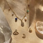 perle d’eau douce, pierre de soleil, labradorite, lapis-lazuli, grenat, turquoise.
